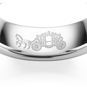 Klasická rytina pro snubní prsteny je skryta na vnitřní straně prstenů a skládá se z křestního jména a data svatby.